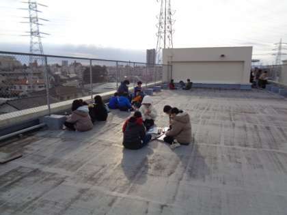 音楽は武蔵丘小学校の伝統「カノンプロジェクト」で、5年生にパッヘルベルのカノンを教えるべく、屋上でリコーダーの練習をしました。1年ぶりだったので、思い出しながら取り組んでいました。