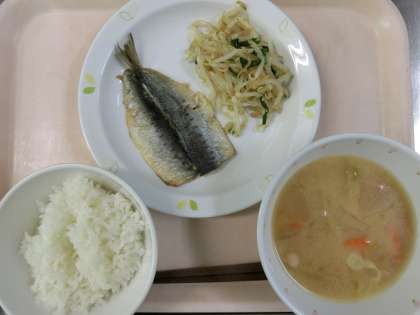 ごはん・いわしのかば焼き風・もやしのごま風味・呉汁