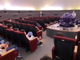 大きなドーム内に映し出された、夜空をゆったりとした座席でしっかりと見学し、学習しました。楽しそうでした。次は高尾山に行きたいね。