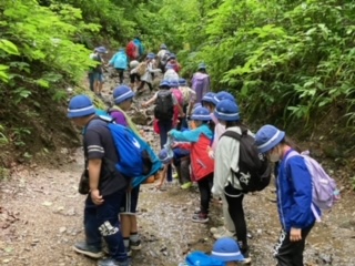 今日は6号路というコースを歩きました。普段、なかなかできない登山体験です。数分、小雨がありましたが後は大丈夫でした。山頂は素晴らしい景色です。解放感とともに登り切った達成感にあふれ、みんな自信をもてた様子です。次は、お弁当です。