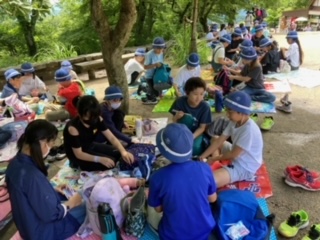 引き続き、大快晴です。山頂でグループごとにお昼とおやつを食べました。山頂での食事はたまらない様子でした。