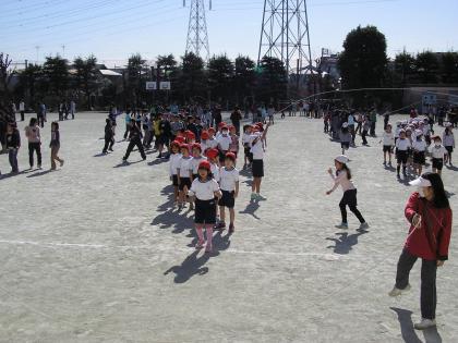 本校では、毎週水曜日の中休みを「ハッスルタイム」の時間として、全校で短縄跳び、持久走、ドッジボール、大縄跳び等の運動に取り組んでいます。写真は、2月18日(水)の「ハッスルタイム」の様子です。「ハッスルタイム」のねらいは、体力の向上と運動に親しむ態度を全校体制で育んでいくことです。これからも、全校児童と教員がいっしょになって運動を楽しんでいきたいと思います。