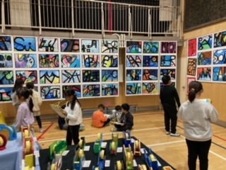 「名前アート」は、自分のイニシャルなどの空間に、それぞれ好きなものを描き入れました。