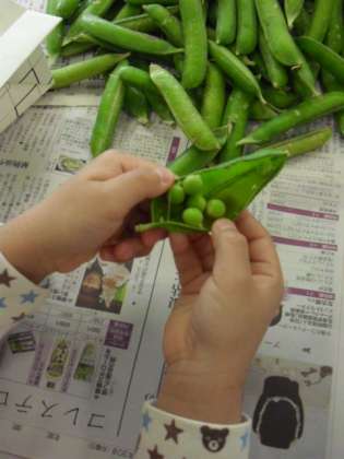 5月7日(月)の生活科の時間に、グリーンピースのさやむきをしました。