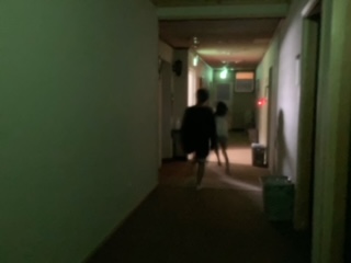 夕食後はきもだめしでした。コースは消灯のホテル内です。階段は危ないので明るくしました。廊下は暗くて何が出るか、本当に怖いです。友達とペアで楽しく過ごせたようです。写真、何か写ってますよね。