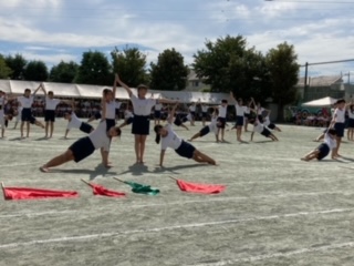 小学校最後の運動会。フラッグと組体操に挑戦しました。友達とともに協力して素敵な表現ができ