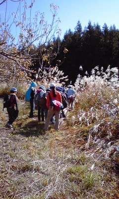 雑木林やヒノキ林、ススキの野原などを、ビレジの方の説明を聞きながら歩いてきました。とても分かりやすいお話に、みんな興味をもって聞き入っていました。