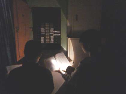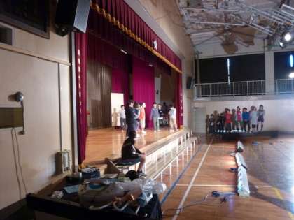 また、五年生は演技だけではなく、照明、楽器、音響、大道具など仕事を分担して劇を作り上げています。休み時間や朝の時間に練習や準備をしています。
