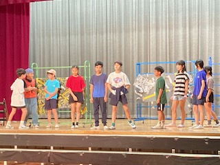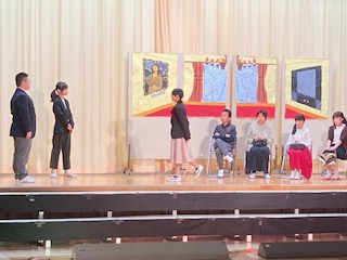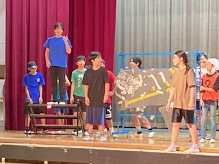 5年生も小学校最後の学芸会です。子どもたちと大人たちの関わりについて演じました。仲間がいれば何でもできる!「全力で 心をこめて ともに最高の劇を創りあげよう」を学年スローガンに臨みました。