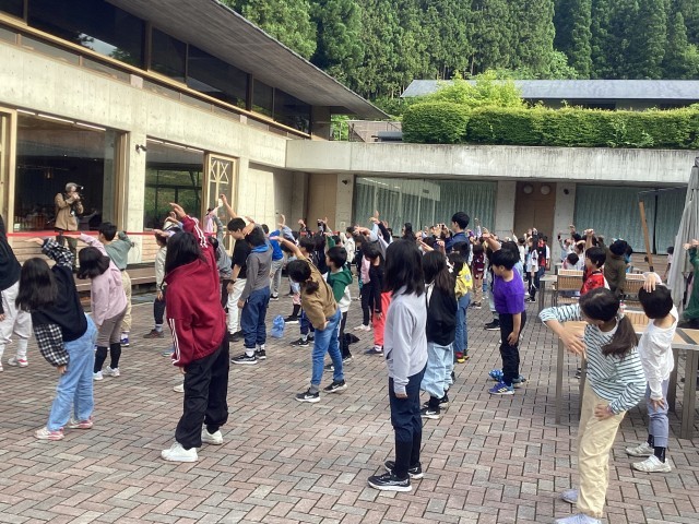 川場移動教室の2日目になりました。朝会はさわやかで涼しい気候でした。体操を行い、朝食をしっかりととった後、自然散策に出発しました。川場でしか見られない景色が最高のようです。山の自然に囲まれ、たくさん歩きました。