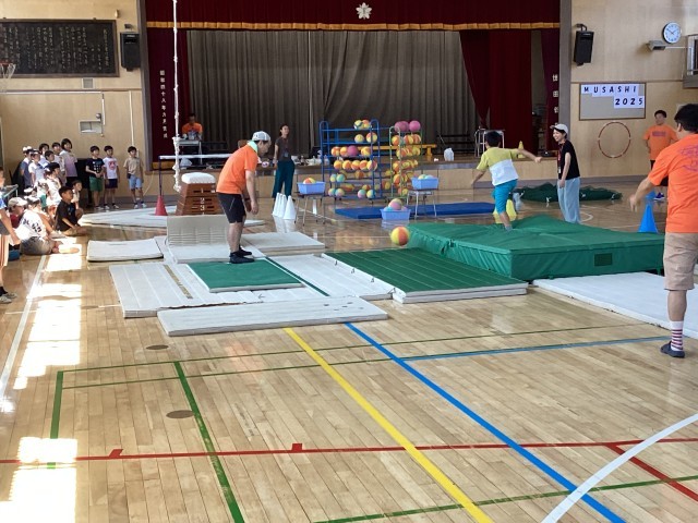 「MUSASHI(ムサシ)」では、体育館に約10のアトラクションを作り、順番にクリアし、タイムトライアル方式でゲームを行いました。