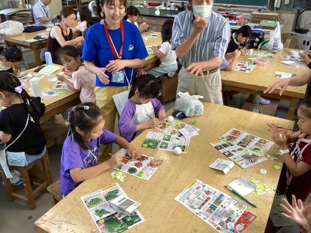 「起き上がり小法師」は、倒れても起き上がるという河童(かっぱ)をモチーフにしたものです。うまく起き上がりました。