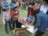 15日(木)児童集会で、クラス対抗ゲームを行いました。クラスみんなで見本の...
