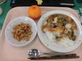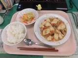 今日の給食は、中華丼・大豆とじゃこの甘辛あげ・ぽんかん です。 にんにく ...