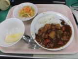 今日の給食は、チキンカレーライス・やさいのあまずかけ・りんご です。 にんにく ...