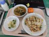 今日の給食は、そぼろごはん すいとん かぶのレモン醤油がけ みかん です。 しょ...