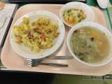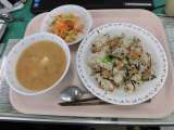 今日の給食は、パエリアふう・ベーコンと野菜のスープ・フレンチサラダ です。 にん...