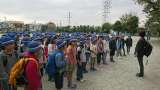 秋晴れのなか、本日五年生の社会科見学です。7時50分集合です。