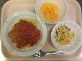 10月29日(月) スパゲティミートソース・カリカリポテトサラダ・フルーツ...
