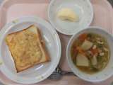 10月18日(金) ツナトースト・大豆の田舎風スープ・くだもの にんじ...