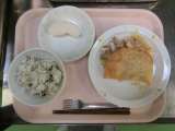 10月17日(木) わかめじゃこごはん・ジャンボ餃子・春雨サラダ・くだもの...
