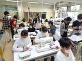 家庭科はトートバッグ作りです。先生から手順を聞いた後、自分たちで進んでミシンを使...