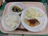 今日の給食は、*ごはん *魚のステーキソース *こふきいも *わかめサラダ です...