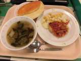 今日の給食は、*ミルクパン *ヘルシーハンバーグ *コーンポテト *白菜のスープ...