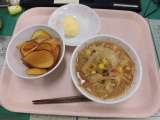 今日の給食は、*味噌ラーメン *スウィートポテトフリッツ *りんご です。 にん...