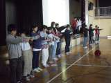 大妻女子大学の皆さんとともに、1年生から4年生までの各学年の児童がパネルシアタ...