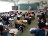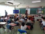 3組はオンライン学習で算数の学習を進めています。先生が放送室に入って、つながって...