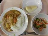 12月19日(月) カレーライス・こんにゃくサラダ・くだもの たまねぎ ...