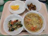 教の給食は、*札幌ラーメン *青のりフライドポテト *ナムル *清美オレンジ で...
