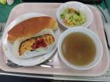 今日の給食は、*チーズパン *スペイン風オムレツ *ブロッコリーのサラダ *コン...