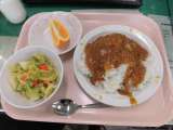 今日の給食は、*キーママレーライス *ポテト入りフレンチライス *清美オレンジ ...