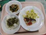 今日の給食は、*ごはん(ふりかけ) *魚の和風ソースかけ *粉ふきいも(カレー味...