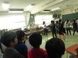 烏山中学校の英語の先生に4年生の外国語活動の授業をしていただきました。みんなで英...