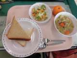 教の給食は、*煮込みうどん *天ぷら(ちくわ、ワカサギ) *野菜のごま和え *は...