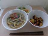 教の給食は、*けんちんうどん *野菜のあまずあえ *リンゴとサツマイモのあげに ...
