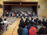 春分の日の雪で校庭が使えず、今年度の修了式は体育館で行いました。卒業式の5・6年...