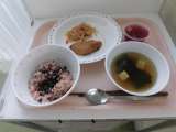 教の給食は、本年度最後の給食です。*お赤飯 *魚の竜田揚げ *野菜のおかかかけ ...