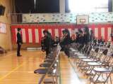 1年生から4年生が下校した後の体育館では、5・6年生と先生方で卒業式の予行練習を...