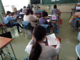 国語は「提案しよう、言葉とわたしたち」という単元で、提案内容をタブレットでまとめ...