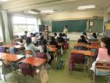 5・6年生の外国語の授業。15分のモジュールの時間は担任の先生が一人で行いますが...