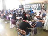 5年1組の習字の授業の様子です。誰一人しゃべらず、集中して筆を動かしています。集...