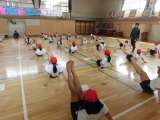体育館では、6年生が体育をしています。昨年度取り組んだ組体操の一人技を思い出しな...