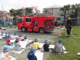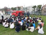 社会科で消防署の働きを学習する4年生。今日は、1・2年生の消防写生会に来てくれた...