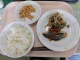 今日の給食は、ごはん・さわらのあまずあんかけ・やさいのあまずあんかけ・ぶどうまめ...