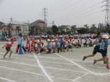 1年生は、初めての50m走。自分のコースを最後までまっすぐに走ることが目標です。...