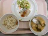 6月27日(木) 大豆とじゃこのごはん・魚の梅肉焼き・野菜の甘酢かけ・わか...